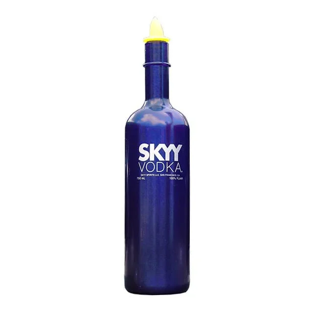 Like all of our Flair Bottles, the Skyy Flair Bottles are made from a high quality PVC plastic ideal for practicing flips and tricks for your next flair show. Replicating the common Skyy Vodka bottle design. Furthermore, Skyy Vodka is by far one of the most prominent supporters of flair events around the wold and bartenders can now practice with the bottle that will most likely be used in a competition. If you are familiar with the standard Skyy bottle you will find that our flair practice version offers the same height and weight and measures the same standard 750ML.