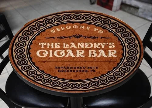 This wooden table top is made in the USA, and handcrafted in our own woodshop. The print on the wood features beautiful vibrant colors, and is perfect for your man cave, restaurant, or tiki bar.