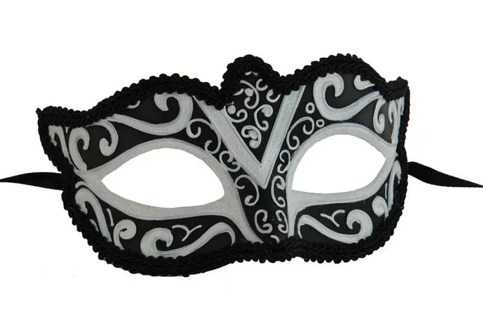 White Silver Venetian Mask With Stick